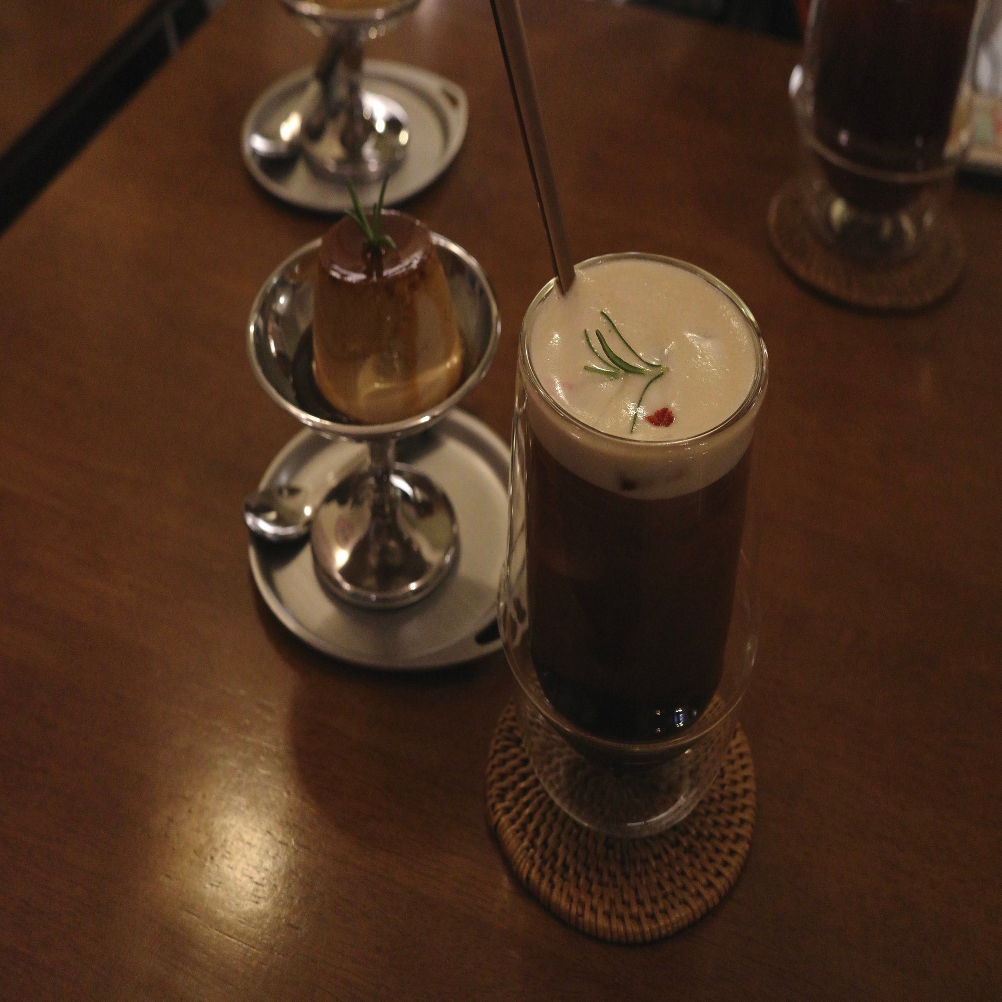 「銀座聚場 咖啡民宿」のプリンとコーヒー
